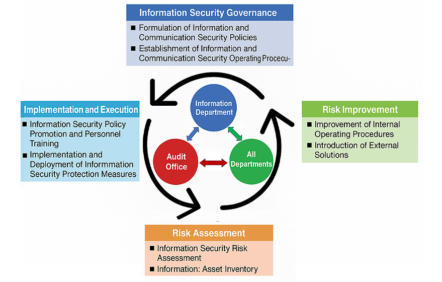 The Information Department is the responsible unit for information and communication security of the Company. The department is staffed with an information executive and professional information personnel, and is responsible for formulating internal information and communication security policies, planning and implementing security protection measures, promoting and enforcing security policies, and regularly disclosing the status of the Company’s information security governance.